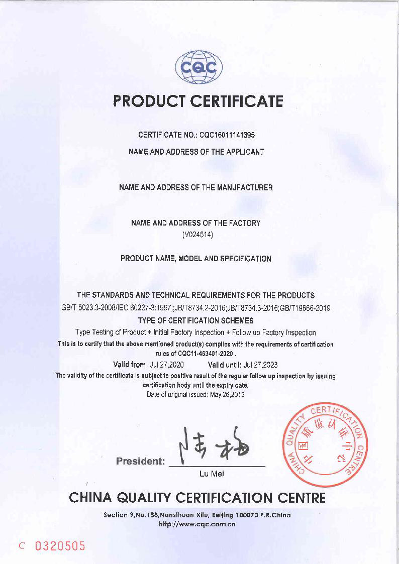 產(chǎn)品通過中國國家強制性產(chǎn)品認證,ISO9001質(zhì)量管理體系認證等管理體系認證;
